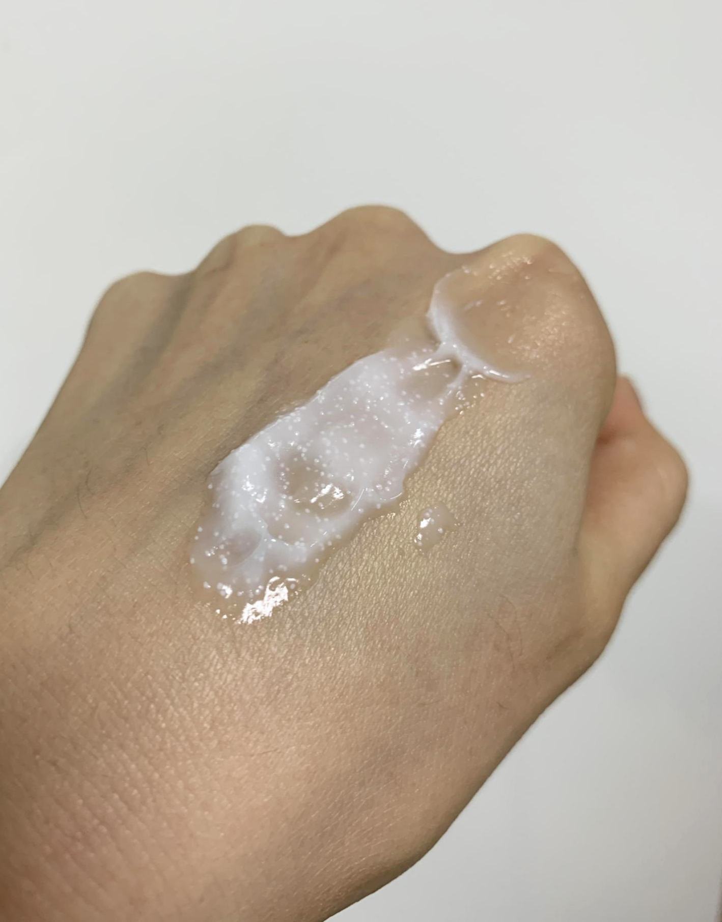 하얀색 작은 알갱이들이 있는데, 얼굴에 바르면 다 녹아서 사라져요.(자극 없음)