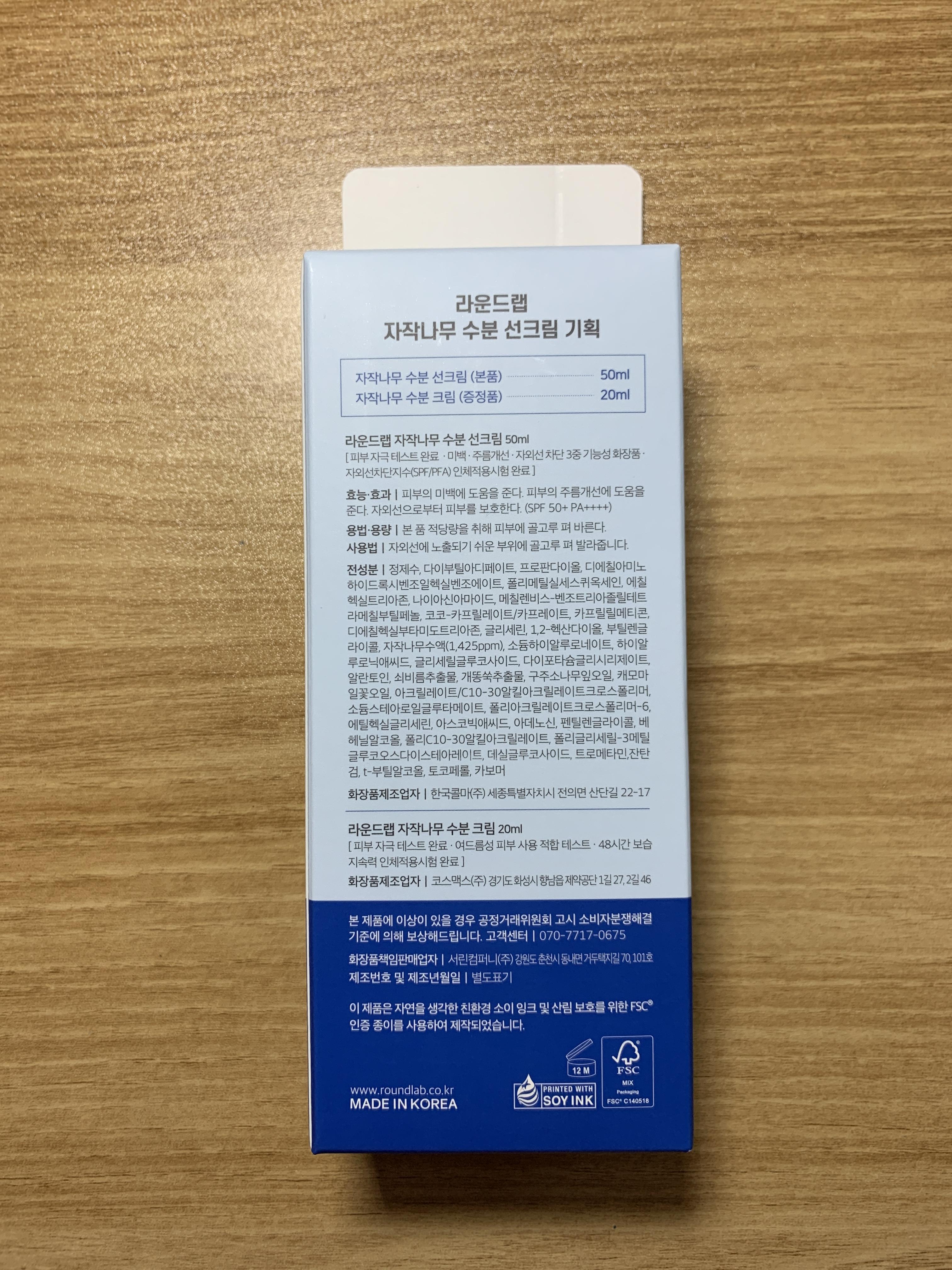 라운드랩 자작나무 수분 선크림 50ml 기획(크림 20ml)